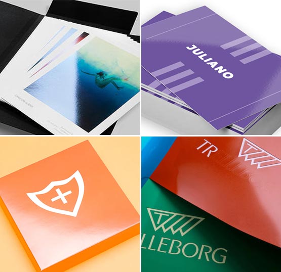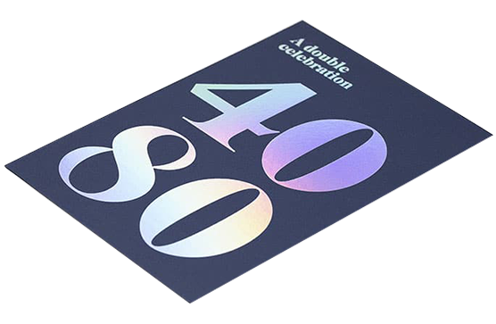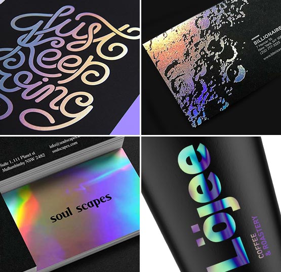While the classic gold and silver foiling never goes out of style, our Holographic Foiling takes this lamination to new height of sophistication with its beautiful diffraction of light showing the eye-catching colors of the spectrum at different angles. It is done in the same way as Metal Foil Stamping but includes embossed patterns of your choice. You can get it done on all sorts of paper and cardboard materials for your custom-designed patterns.