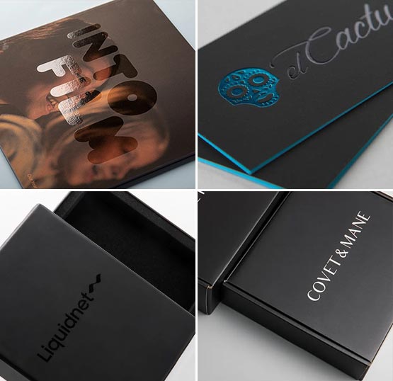 Metal Foil Stamping is a great way to add a touch of luxury to your custom packaging boxes. Its fancy impression gives a high-end appeal to the packaging, while the outstanding shine helps them stand out on the crowded shelves. Metallic Foiling can be done on all sorts of paper and cardboard for your desired custom artwork. We do it by using a hot stamping press and a custom metal die of your desired design. The foil sheet goes between the metal die and the paper/cardboard which then gets foil-stamped in the desired areas.
